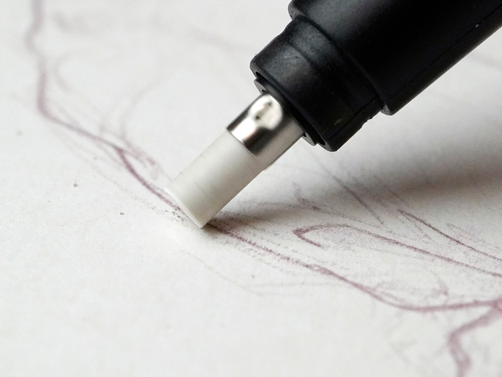 Derwent battery eraser is ideal for creating unusual effects and for experimenting with different drawing techniques. It can of course be used to rub out unwanted marks too! When the eraser is switched on, the spinning action of the eraser lifts pigment from the paper. The precise control offered by the eraser makes it suitable for highlighting and refining marks and amending small areas of work. USB rechargeable eraser comes with a built-in 500mAh lithium-ion battery which is recharged by USB for convenience and long lasting charge, no need to change batteries. Includes a USB charging lead and 20 erasers refills, (10 large erasers 5mm & 10 extra fine eraser 2.4mm diameter). The extra fine eraser is perfect for fine hair line erasing for detailed artwork and technical drawing. The function button is designed to push on and off when required, allowing your hand to hold freely for maximum control.