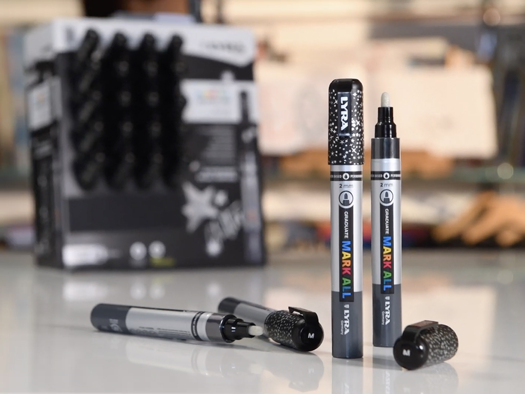 With Lyra Graduate Mark All paint markers, you can easily decorate any surface — whether it’s fabric, paper, cardboard, wood, metal, or almost any other material. They’re perfect for drawing, colouring, decorating, marking, writing, calligraphy, and more.