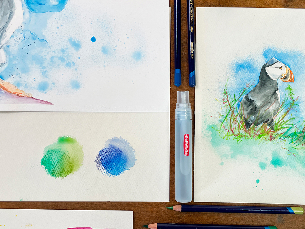 The spritzer adds a new creative dimension to your water based work. Spray water directly over water-soluble drawings to create interesting textures, colour runs and dribble effects. You can also dissolve colour pigment in the Grate ‘n’ Shake (Inktense or Watercolour for example) fill the spritzer and spray colour straight onto your image. Many artists will also spray water lightly over paintings to maintain a wet workable area.