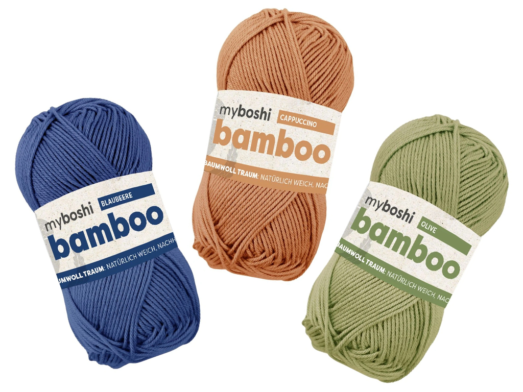 „Myboshi Bamboo“ – tai minkšti, švelnūs, odos nedirginantys siūlai, kurių sudėtyje yra 60 proc. bambuko pluošto ir 40 proc. medvilnės. Bambukas suteikia siūlams šilkinį pojūtį ir gerą drėgmės reguliaciją, o medvilnė – patvarumą ir stabilumą. Kvėpuojantys ir šiek tiek krentantys siūlai ypač tinka patogiems ir kasdieniams rūbams.