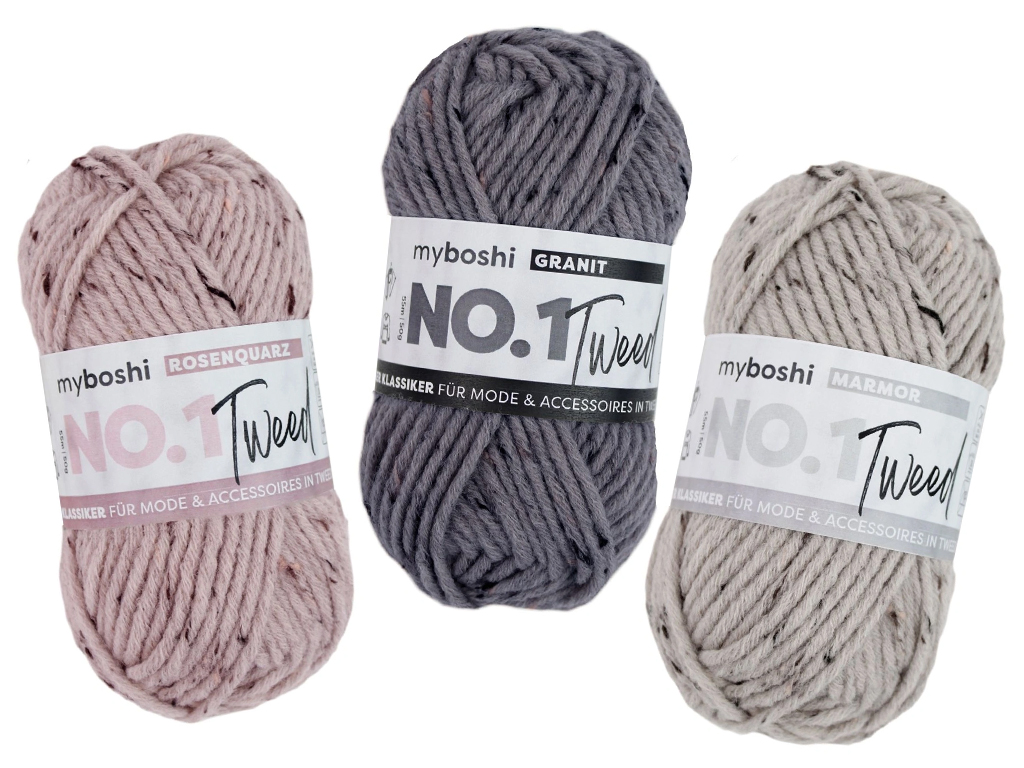 „Tweed“ serijai būdingi maži spalvų taškeliai, suteikia darbui elegantišką kaimišką tekstūrą. Laikui bėgant siūlai nesusivelia ir puikiai tinka tiek pradedantiesiems, tiek patyrusiems mezgėjams. Šilti ir madingos išvaizdos „Myboshi No.1 Tweed“ siūlai puikiai tinka kepurėms, galvajuostėms, šalikams ir kitiems jaukiems žiemos aksesuarams.