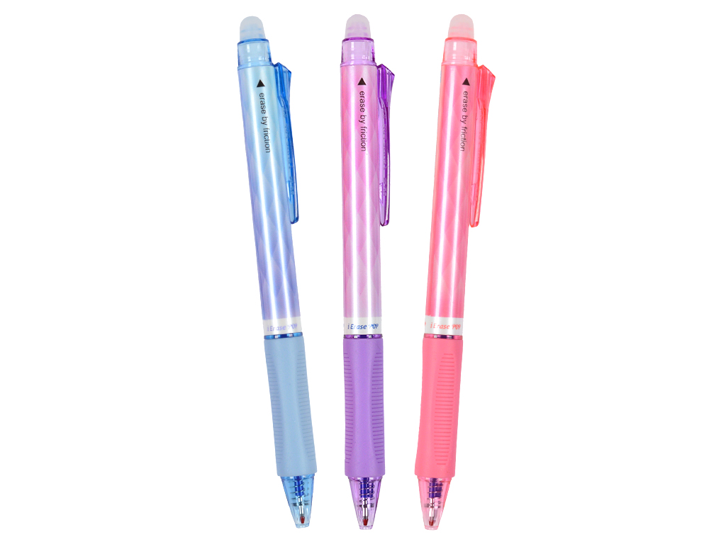 Kirjuta, kustuta ja kirjuta uuesti! Lõbusa välimusega geelipliiatsil on temperatuuritundlik tint, mis hõõrdumisel kustub. Saab kirjutada, kustutada ja kirjutada kohe uuesti, ilma et see kahjustaks paberit.