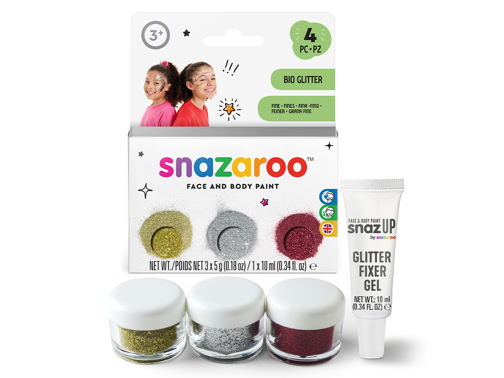 Snazaroo Bio Glitter lisab glamuuri ja sära igale festivalile ja peole. Bio Glitter on valmistatud jätkusuutlikest materjalidest ning sisaldab 92% vähem plastikut. Snazaroo kosmeetika kvaliteediga glitter on biolagunev, nahasõbralik, lõhnatu ja julmusevaba. Täiuslik laste sünnipäevapidudeks ning näomaalingutele sära lisamiseks.